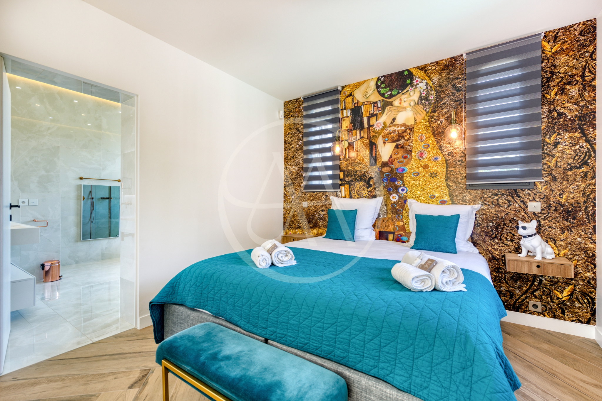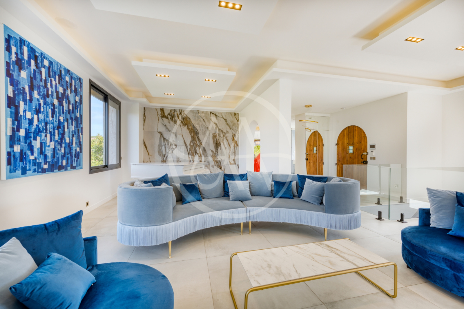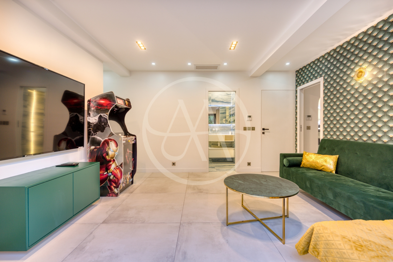 La villa offre cinq suites spacieuses, chacune disposant de sa salle de bain ou salle d’eau privative, garantissant à chacun intimité et bien-être. Les pièces de vie, lumineuses et traversantes, s’organisent autour d’un vaste salon avec espace musique, salle à manger chaleureuse et cuisine ouverte entièrement équipée, idéale pour partager de vrais moments de convivialité. Un second salon, plus intime, est dédié aux instants de détente ou aux soirées cinéma, tandis qu’une salle de sport entièrement équipée permet de maintenir votre routine bien-être en toute sérénité.