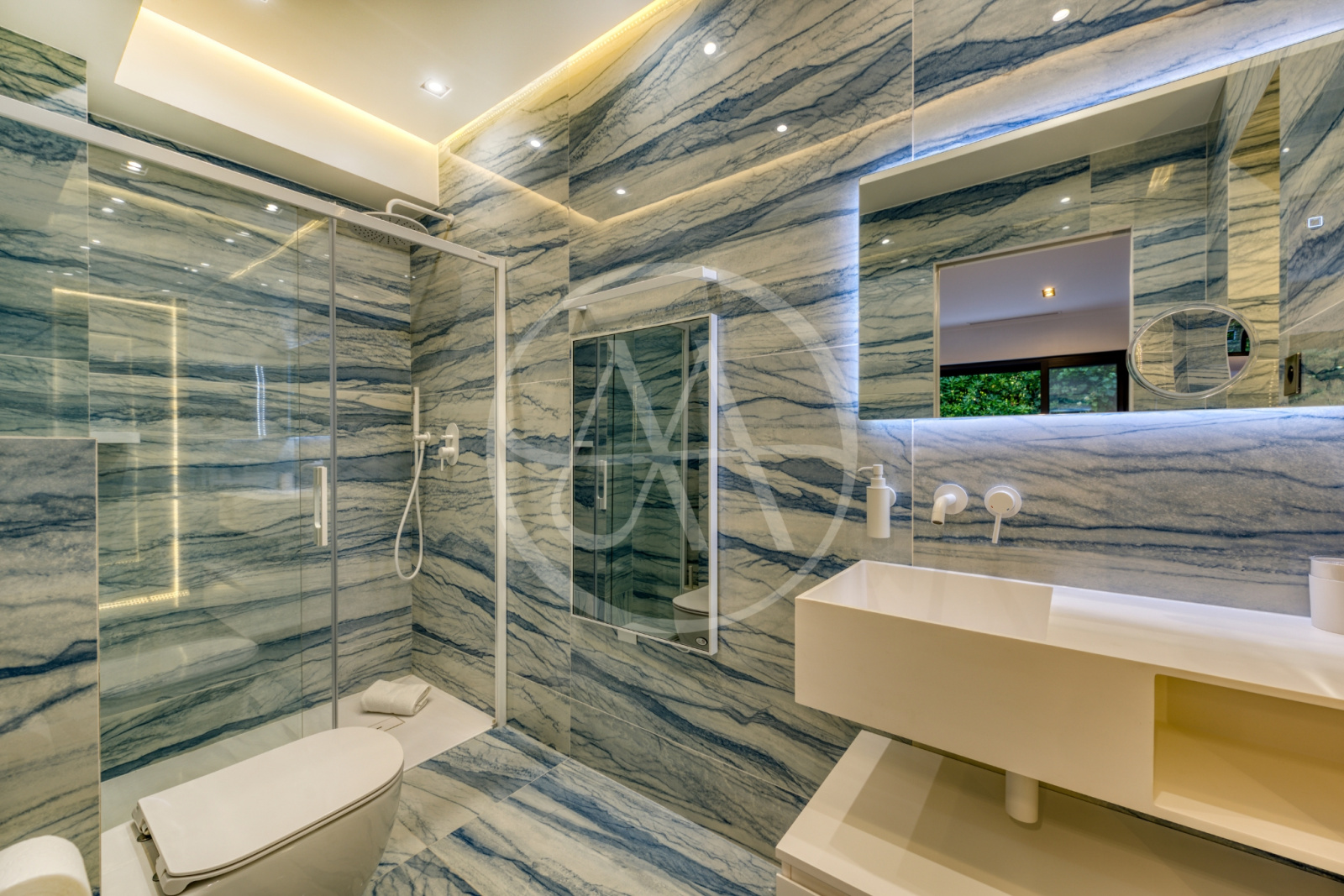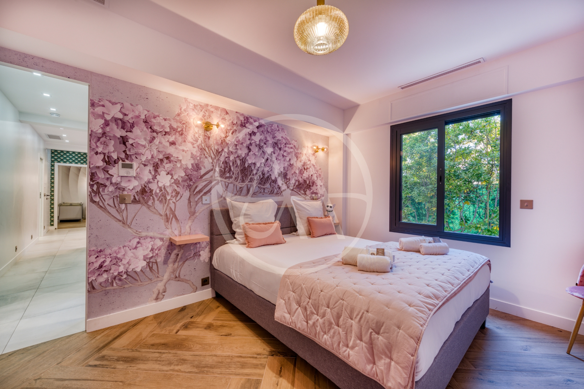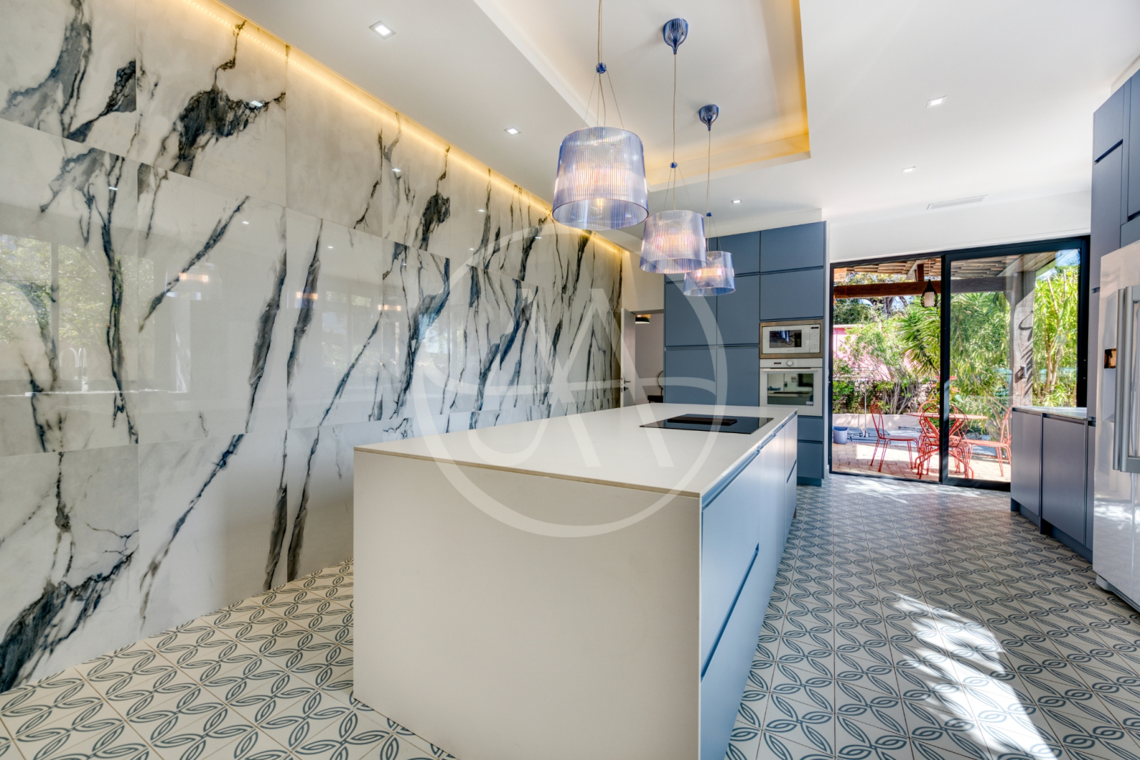 La villa offre cinq suites spacieuses, chacune disposant de sa salle de bain ou salle d’eau privative, garantissant à chacun intimité et bien-être. Les pièces de vie, lumineuses et traversantes, s’organisent autour d’un vaste salon avec espace musique, salle à manger chaleureuse et cuisine ouverte entièrement équipée, idéale pour partager de vrais moments de convivialité. Un second salon, plus intime, est dédié aux instants de détente ou aux soirées cinéma, tandis qu’une salle de sport entièrement équipée permet de maintenir votre routine bien-être en toute sérénité.